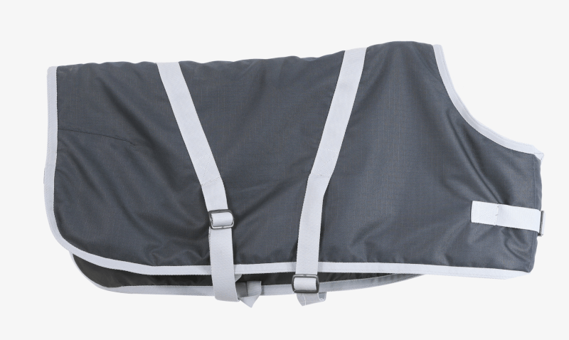 Dog Rug with 600D Ripstop Fabric in Upper, Lower Fabric 210T Tafta Lining 200Gsm Poly fill, Front One Kit Kan 38mm Buckle and Full Cross Surcingle Fashion. Inner Side Leg PP Strap.
