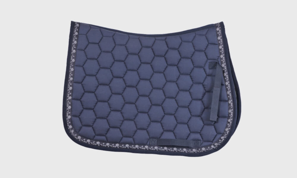 Saddle Pad. Upper Fabric Polyester Drill, Lower Fabric Cool Mesh, Quilting w 10Mm Foam +200Gsm Poly Fill. Same Fabric Binding in All Over, Two Front Strap And Both Side Handle., 25Mm Ribbon Fashion in All Over.