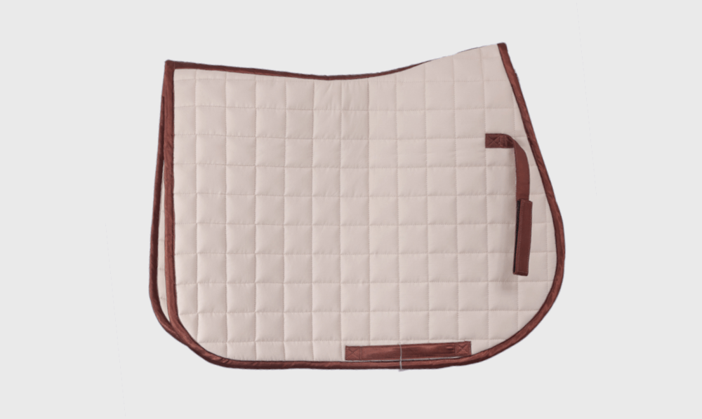 Saddle Pad, Upper Fabric Polyester Drill, Lower Fabric Same, Filling 8mm Foam, 200Gsm Poly Fill, Both Side Strap and Handle, Satin Fabric Binding in All Over.