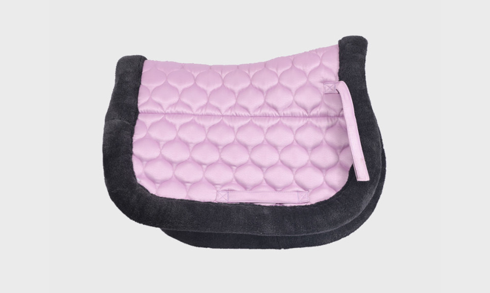 Saddle Pad, Upper Fabric Polyester Drill, Lower Fabric Same, Filling 10mm Foam, 200Gsm Poly fill, Both Side Strap and Handle Covered with Fabric, Mink Half Pad Fashion and Binding.